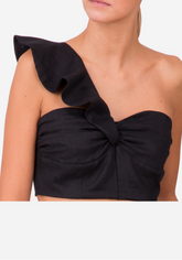 Tailored, effortless, and made for golden hour. Pairs perfectly with the Linen ruffle crop top.
